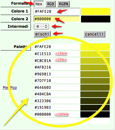 Con i "valori di appoggio" delle tavolozze è facilissimo di interpolare tutte le sfumature desiderate dtra due tinte.