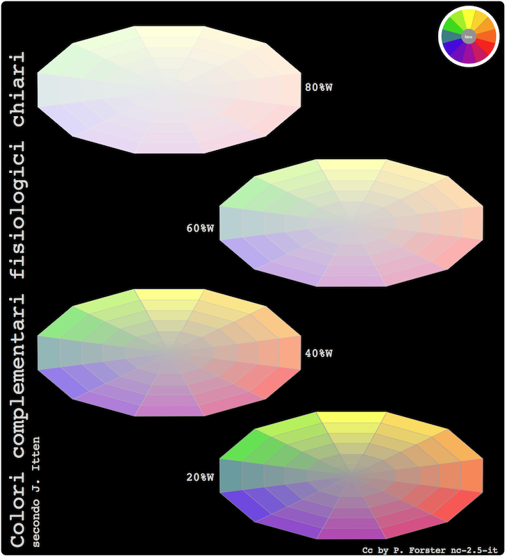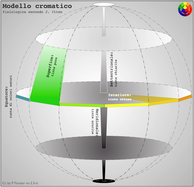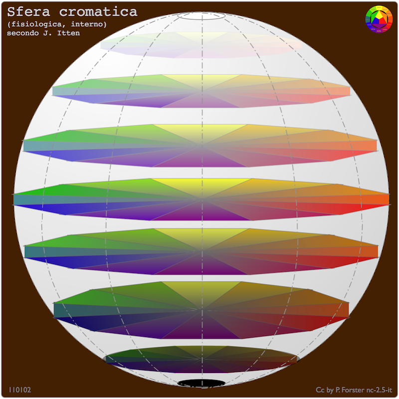 Basi di cromatologia ◊ Contrasti cromatici ◊ Modello sferico di tinte ◊ Accordi cromatici ◊ Tinte e forme ◊ Effetto topografico di tinte ◊