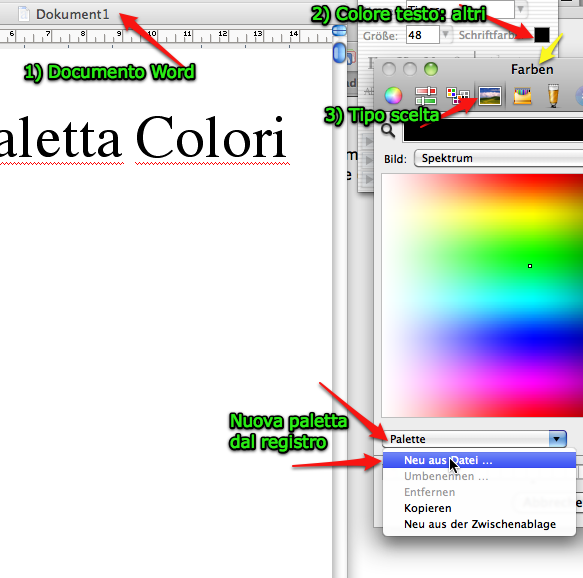 Il metodo più facile per integrare una nuova tavolozza nel sistema (Mac) è la seguente: