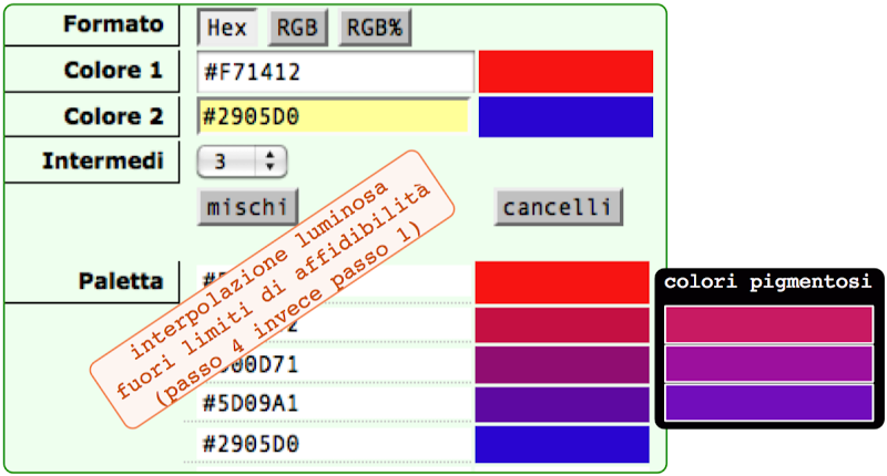 Per una paletta di colori pseudopigmentosi (fisiologici) sul web servono delle interpolazioni facilmente eseguibili ed accettabili come risultato ottico.