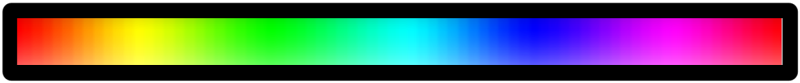 La tonalità è definita in coordinate polari (gradi) da 1 ... 360 cominciando dal rosso puro #ff0000 in senso antiorario seguendo lo spettro luminoso fino a tornare al rosso a 360°.