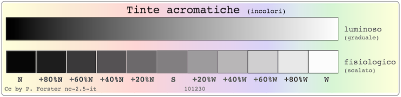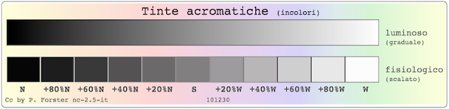 Le tinte bianco e nero sono i mezzi più potenti per ottenere il contrasto chiaro e scuro. Tra di loro sono situati i grigi e i colori.