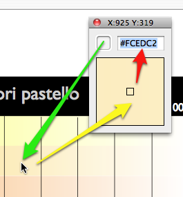 ColorPickers → "Beccatinte" sono degli aggeggi sul computer che permettono di determinare il valore esadecimale (o un'altro) cliccando semplicemente su un colore sullo schermo.