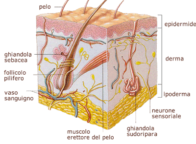 Strato corneo ◊ Epidermide ◊ La pelle (tegumento) ◊ Derma ◊ Sottocute ◊